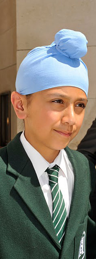 So anytime you see a Sikh who has his hair in a bun at the top of his head and unshaven beard and a turban, please do not think of him as a terrorist.