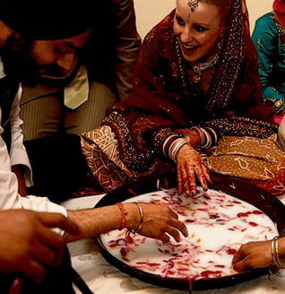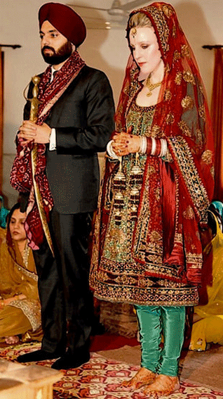 Her elaborate wedding attire consisted of a very ornate sari and four different suits of salwar kameez, gifts from the groom's family for the festivities. "What you wear is very important and the bride is the centre of attention, so there was a lot of pressure in that sense, particularly since I am not Indian. But the Sikh marriage is considered very sacred and I learnt a lot from it as one who has never felt connected to my own religion, which didn't have any relevance. Sikh belief is very scientific."
