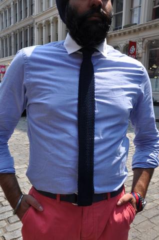 "I’m a big fan of colorful ‘go to hell’ pants – just have to remember to keep everything else simple and relatively neutral. Although you can still have a little fun with a nautical themed belt.”