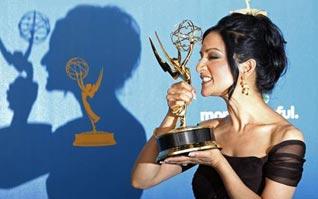 The 38-year-old, who made her name in the British hit films East is East and Bend it Like Beckham, appeared elated as she accepted the prestigious U.S. television award.