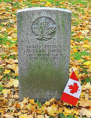 In a quiet corner of a Kitchener graveyard rests the headstone of Pte. Buckam Singh, one of the first Sikhs to live in Ontario, Canada, and one of nine Sikh-Canadians known so far who served with Canadian forces in the First World War.