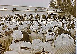 Photos: First from bottom - Dalip Singh Saund being welcomed by a crowd at the school he had helped found, during his early life, in his village in Punjab.