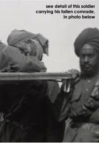 On the 12th of March, the British made an early advance in the battle. But by the time Manta Singh was in the field, German reinforcements were putting up stiff resistance. It was during this battle that his friend and comrade, Captain Henderson (who appears standing next to him in the first photo from the bottom) was injured. Manta Singh pushed him to safety in a wheelbarrow he found in no-man's land. He then returned to the chaos of battle.
