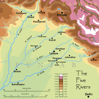The five rivers of Punjab are the Sutlej, Beas, Raavi, Chenab and Jhelum. These rivers merge at various points and then join the "Sindh" (in Punjabi) River, or "Indus" (in English), from which the name India derives.