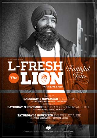 L-FRESH The LION will be taking to the stage with his full live band this November up and down the East Coast. Faithful will be released on iTunes on Friday, October 25, 2013, along with the film clip.