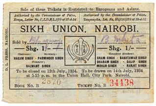 A few years ago during my research work for SikhMuseum.com, I came across a fascinating piece of Kenya’s apartheid history. It was a lottery ticket for a charity called “The Sikh Union, Nairobi.”
