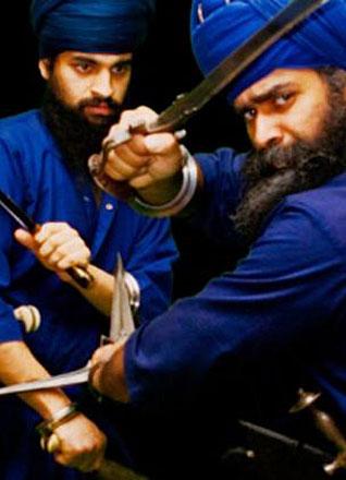 In a fluorescent-lit sports gymnasium at a sprawling sixth-form college in Hounslow, west London, England, three turbaned Sikh-Britons are frantically battling each other with razor-sharp swords.