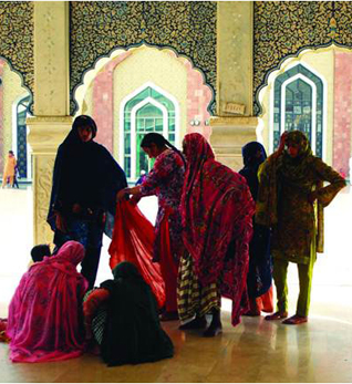 No women are permitted inside this shrine. However, despite its aura and splendor, more devotees choose to visit the simpler grave of Baba Farid which, eight hundred years after his death, continues to inspire their devotion.